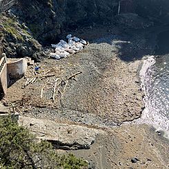 La ditta specializzata che ha effettuato l'intervento ha già imbustato in appositi sacchi ermetici i resti del cetaceo che ora devono andare allo smaltimento. I grandi sacchi sono stati posizionati accanto alle rocce in un punto della piccola baia abbastanza distante dalla linea di battigia.