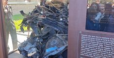 I resti dell'auto scorta Quarto Savoia 15 a Rosignano Solvay per testimoniare la strage di quasi 34 anni fa